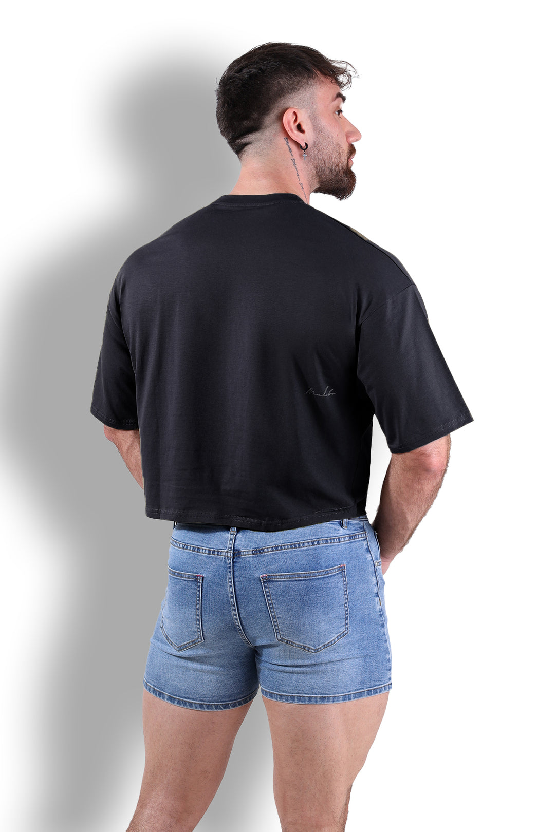 Muscle-Fit Crop Half-Sleeve Tee - Black