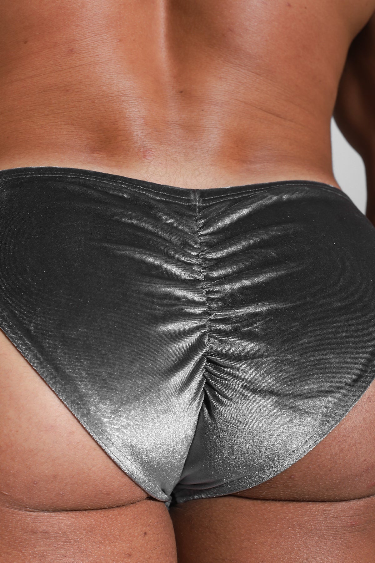 Velvety Scrunch-Butt Bikini Briefs - Fossil Grey L