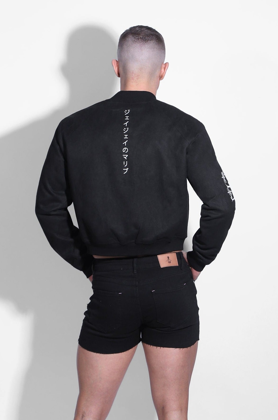 Cropped Suede Bomber Jacket - Black - JJ Malibu