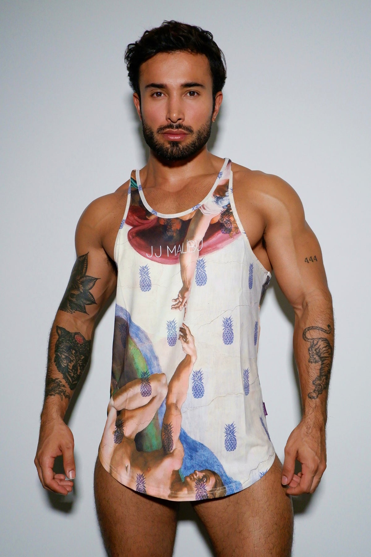 Feel-Me Scoop Bottom Tank - Hands w/ Pineapple Print